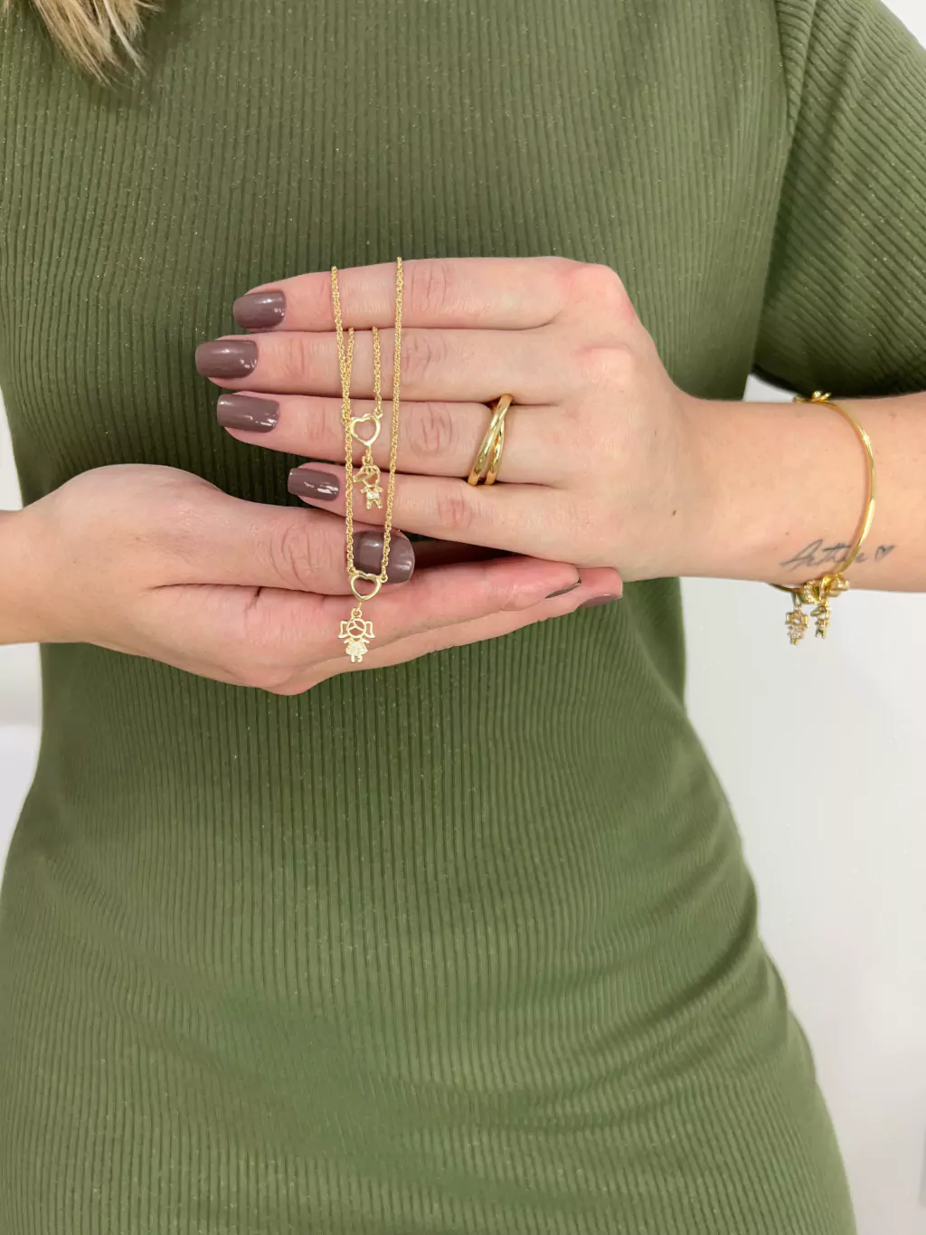 COLAR 45CM ELOS ENTRELAÇADOS C/ MENINA CORAÇÃO Z. BANHADO A OURO 18K